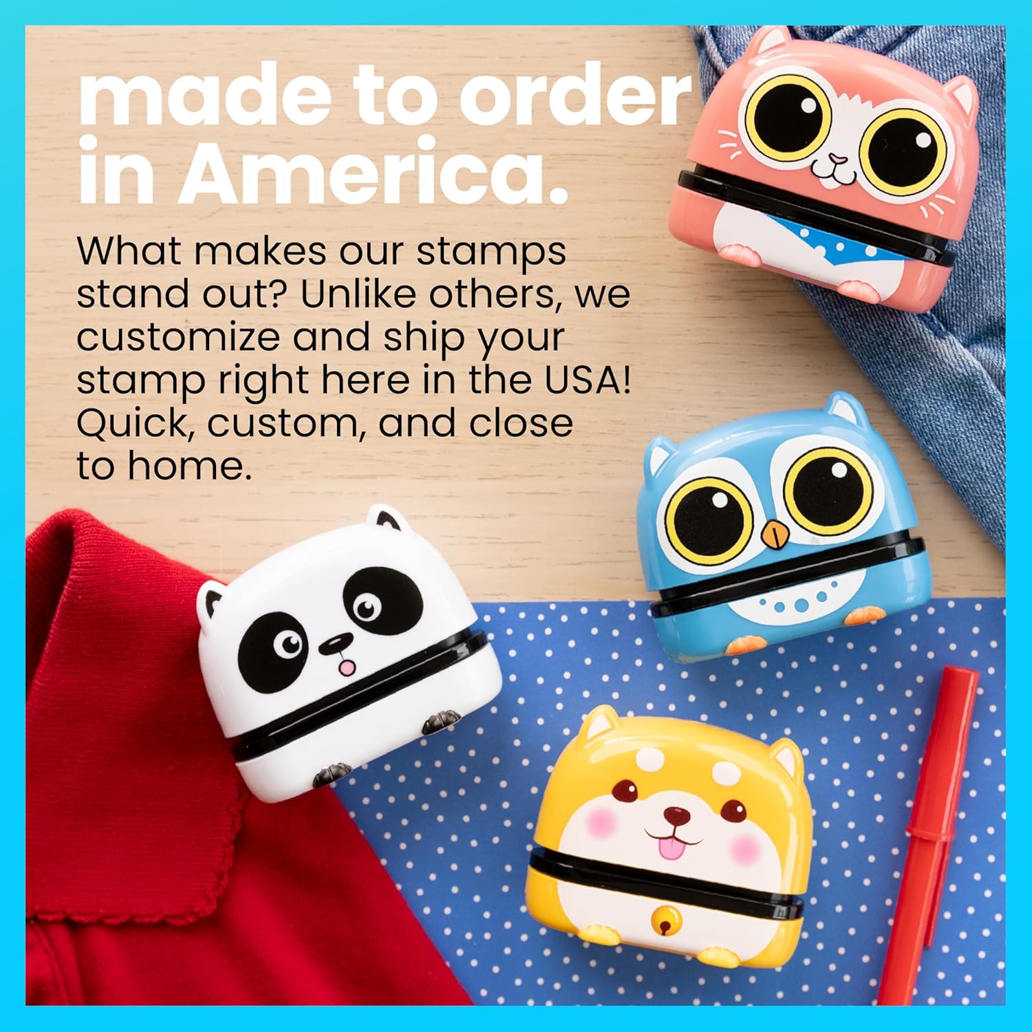 CLOTHING STAMP: This personalized stamp uses an ink solution that is skin safe, allowing you to use it on your clothing without irritation.