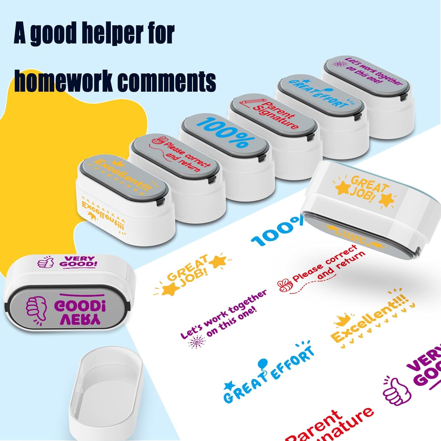 8-in-1 Teacher Stamps for Grading, Classroom & Homework - Self-Inking Set